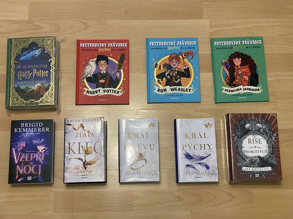Druhý díl skvělé romantasy série od K.A. Tucker jsem si ani v českém překladu nemohla nechat ujít a rozhodně to stálo za to. Hodně mě zaujal i Splétač větrů od Julie Johnson, tak uvidíme, jaká ta kniha bude. I Dotek zloby od Scarlett St. Clair v čekém překladu jsem si nenechala ujít. Trošku mě mrzí, že už zbývá jen poslední díl série, jsem zvědavá, jestli se v českém překladu dočkáme i Hádových knih. A na závěr moje vůbec první knih od Any Huang. Plno lidí má její romance rádo, tak snad se mi taky budou líbit.
