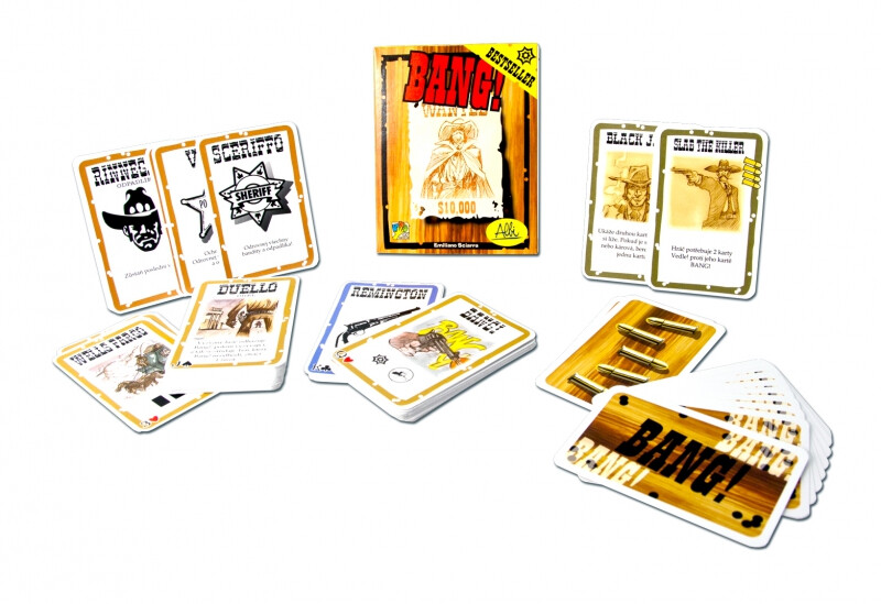 Bang! – karetní hra plná přestřelek, lsti a odhalováníBANG! není jen tak obyčejná karetní hra – je to dramatická přestřelka ve stylu Divokého západu, ve které každý hráč hraje za tajnou roli a snaží se splnit svůj tajný cíl. Jeden je šerif, druzí bandité, někdo může být odpadlík… A jen bystří a pohotoví přežijí až do konce!Jak se hraje