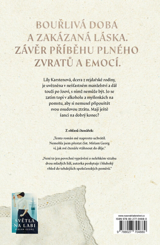 Tři roky žila Lily Karstenová v Liverpoolu, kde daleko od hamburské společnosti porodila dceru Hannu. A každý den zoufale toužila po Joovi.Tři roky se Jo Bolten ze vzteku a žalu vrhal do dělnického boje. A utápěl své pocity v alkoholu. Chce se pomstít za to, co mu udělal jeho šéf – Ludwig Oolkert, nejmocnější obchodník v Hamburku, ho připravil o to nejdražší, co v životě měl. O Lily. Teď zase on vezme to nejdražší Oolkertovi: jeho peníze.Lily, dcera z rejdařské rodiny, se po boku Henryho von Cappelna konečně vrací do Hamburku. Jejich manželství se ale podobá vězení. Karstenova lodní společnost se dostává stále více do rukou Ludwiga Oolkerta. V chudinských čtvrtích to vře, přístavní dělníci už dále nemohou snášet svou bídu. Lilyina vzdorovitého ducha nelze jen tak umlčet. A i když se ničeho neobává víc než shledání, přesto doufá, že se Jo jednoho dne setká se svojí dcerou…Bouřlivá doba. Zakázaná láska. Dojemná sága. Závěr dvoudílného románu.