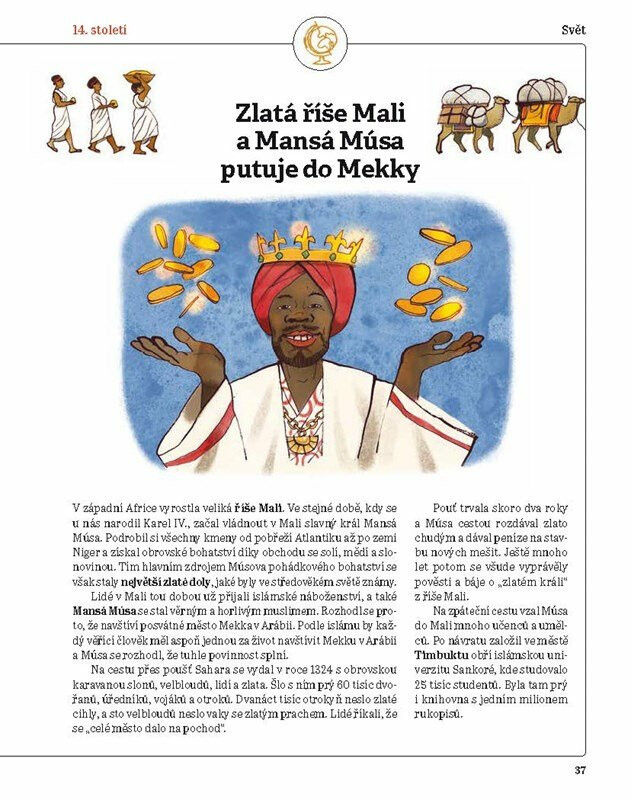 V každém století se podíváme, co důležitého se stalo u nás doma – v českých zemích. A pak vždy navštívíme jedno nebo dvě další místa v cizině, abychom zjistili, co zajímavého a převratného se odehrálo jinde. Díky téhle knížce poznáte, jak různorodý byl svět. Uvidíte pyramidy Mayů, japonské samuraje i stavitele soch moai daleko v Tichém oceánu. Dovíte se, kdo postavil slavný chrám Hagia Sofia i nádhernou a téměř pohádkovou pohřební svatyni Tádž Mahal z mramoru a drahokamů. Historie nikdy nebyla zábavnější!