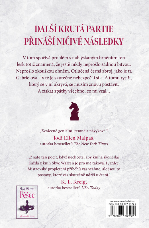 Gabriel Miller mi všechno vzal.Rodinu. Nevinnost. Domov.Jediné, co mi ještě zbylo, je odhodlání získat zpět vše, co mi patří.Myslí si, že mě porazil. Myslí si, že vyhrál. Jenomže mu nedochází, že každý pěšák má šanci stát se královnou. A hra teprve začala.Vyprávění plné zvratů a napětí, pokračování zvláštního vztahu miliardáře a krásky ze zkrachovalé rodiny. Město, jemuž vládnou mocní, kteří si střeží svá tajemství. Touha, pomsta a láska. Právě takový je Jezdec, pokračování Pěšce.