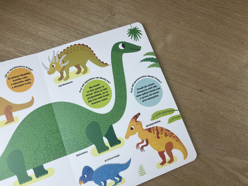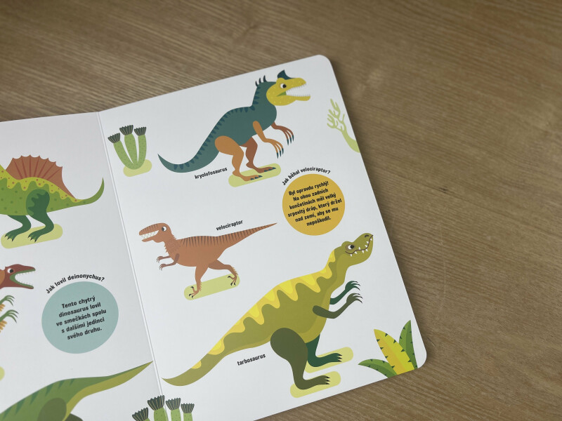 Kniha, kterou právě držíte v rukou, patří k velmi oblíbené edici, stimulující zájem dětí o rozmanité oblasti vědy a přírody. Za pomoci barevných obrázků a krátkých her s tematikou dinosaurů umožňuje dětskému čtenáři rozvíjet fantazii, trénovat a posilovat paměť a zdokonalovat slovní zásobu.