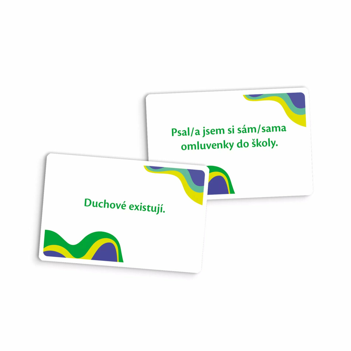Hráč na tahu vyloží jednu kartu s výrokem doprostřed stolu.
