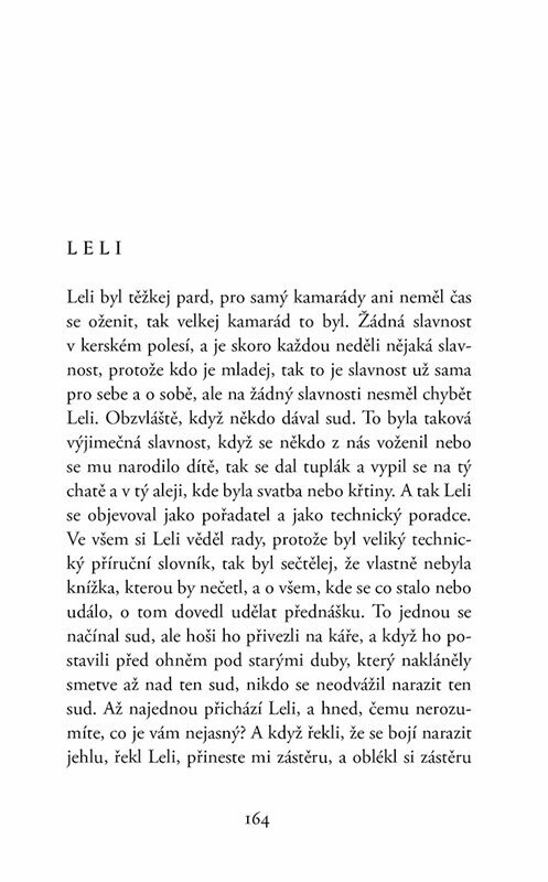 Povídky o lidech, kteří si uchovali pohled první lásky na tento svět i na často nelehký život. Lidé z Hrabalových podobenek jsou obyčejní venkované z oblasti Kerska, kam se autor vrátil do krajiny svého mládí, aby psal a psal.