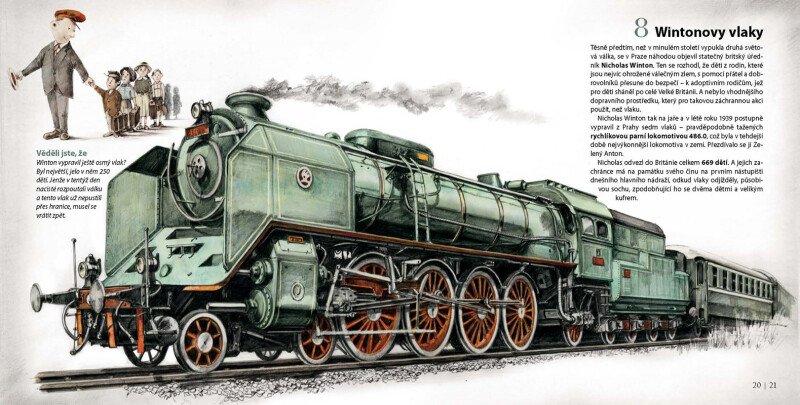 Kdysi dávno usedla na koleje první lokomotiva a svůj náklad do cíle odvezla podobnou rychlostí, jako když jdete na procházku. O dvě století později už se po celém světě běžně proháněly vlaky rychlostí mnoha stovek kilometrů v hodině. Jak k tomu došlo? To zjistíte v této velkolepě ilustrované publikaci. Najdete v ní ty nejzajímavější vlaky: obrovskou parní lokomotivu Big Boy, vznešený Orient Express, posunovací lokomotivu nebo třeba japonský Šinkansen. Tak honem nasedat, tohle si nemůžete nechat ujet!